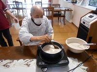おかわりをする入居者様、普段はおやつを食べない入居者様も