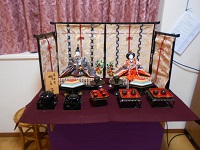 食堂にお内裏様とお雛様を飾り、春らしい飾り付けとなって