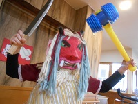 なまはげ(鬼)の「鬼は外」の掛け声に手にしていた