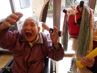 今年は、南南東でした!施設では毎年大物芸能人?を招待していたのですが、今年は「なまはげ」が来たようです