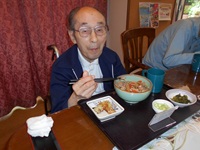 (写真の食事は検食用なので丼ぶりになっていますが、ご入居者様のは弁当箱になっています。)