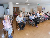 毎週火曜日は音楽療法が行われ、昔の歌や童謡などを歌い、