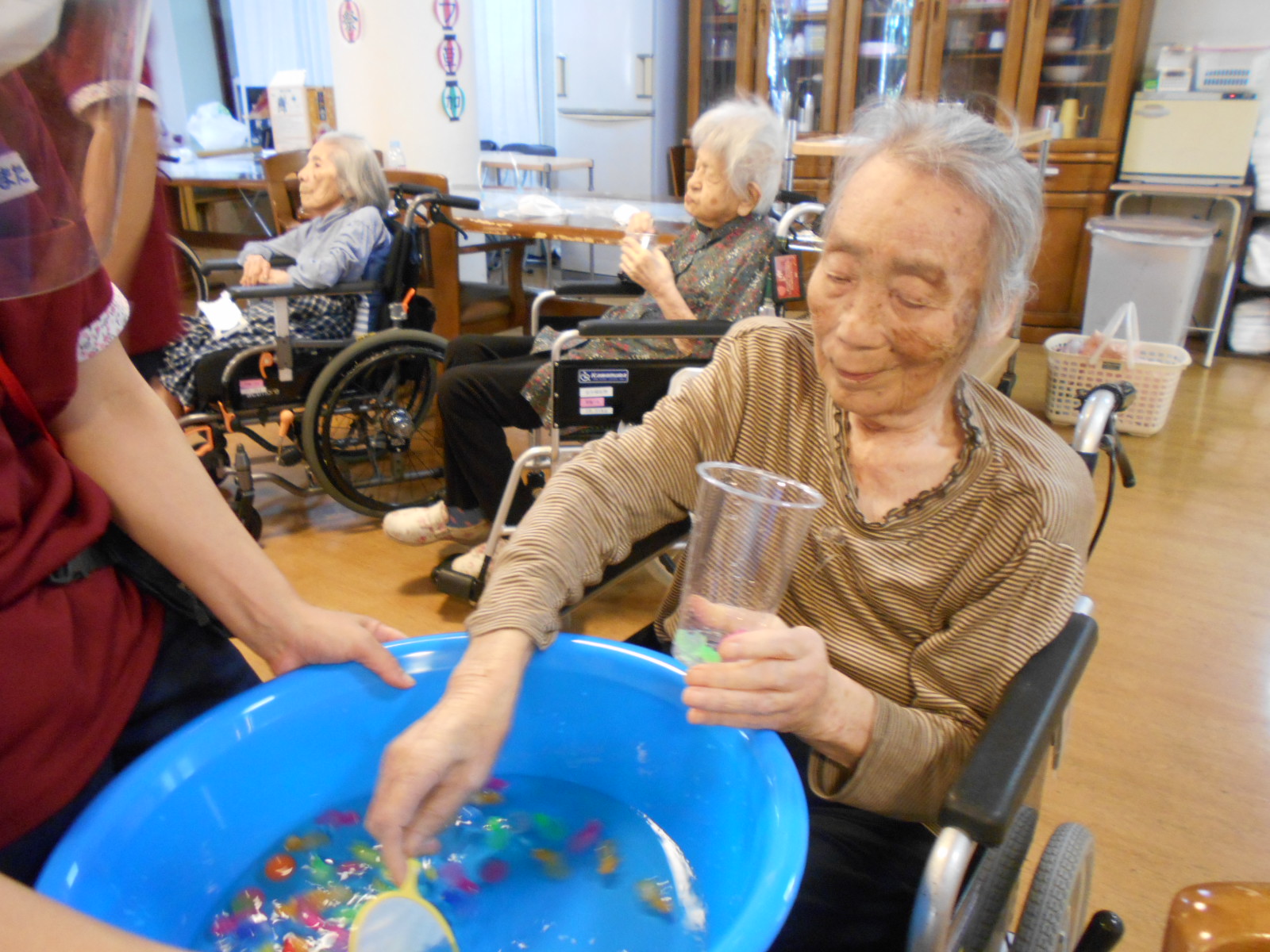 まずは玉入れや金魚すくい等のゲームを楽しんで頂き
