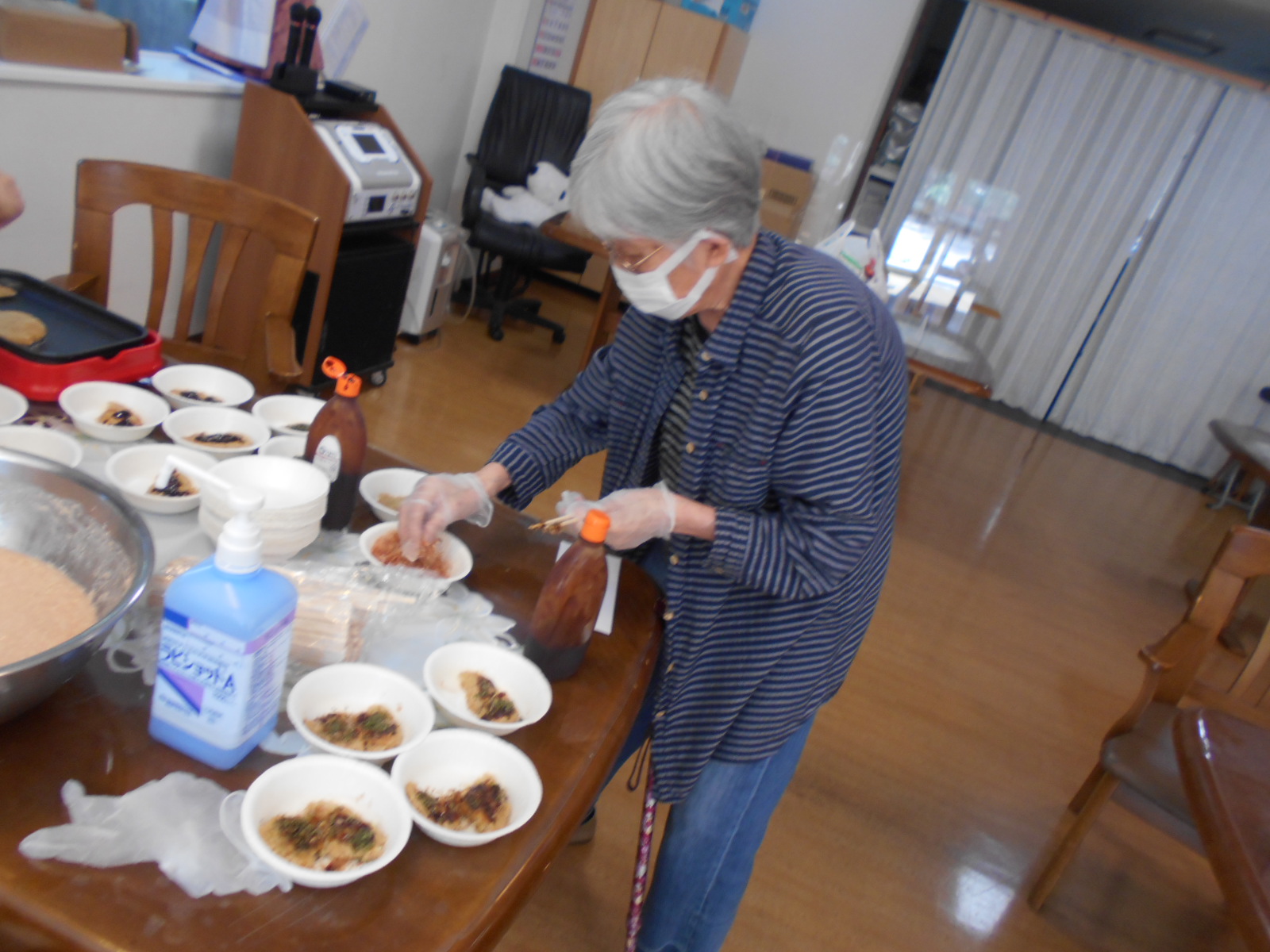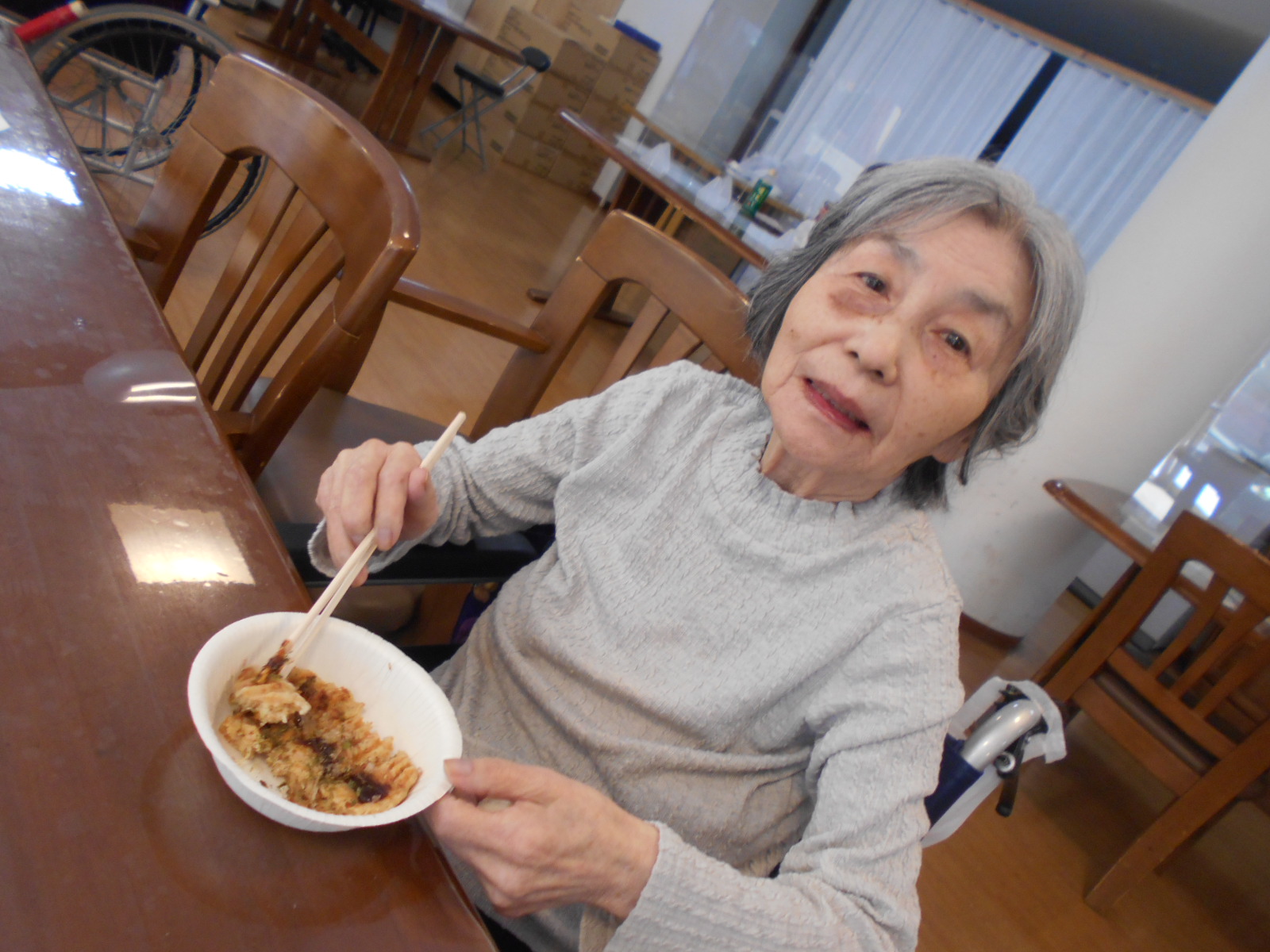 大阪出身のスタッフの指導の下、本格的なお好み焼きが出来上がりましたよ(^^♪
