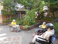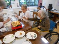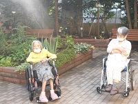入居者の皆さんも「暑い」と言いながら笑顔が・・・