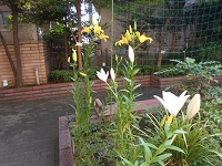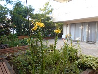 グリーンライフ草加の中庭は紫陽花、向日葵、ゆりの花が咲き、