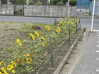 道路際に向日葵が咲いており、その周辺だけ華やかに感じ思わず