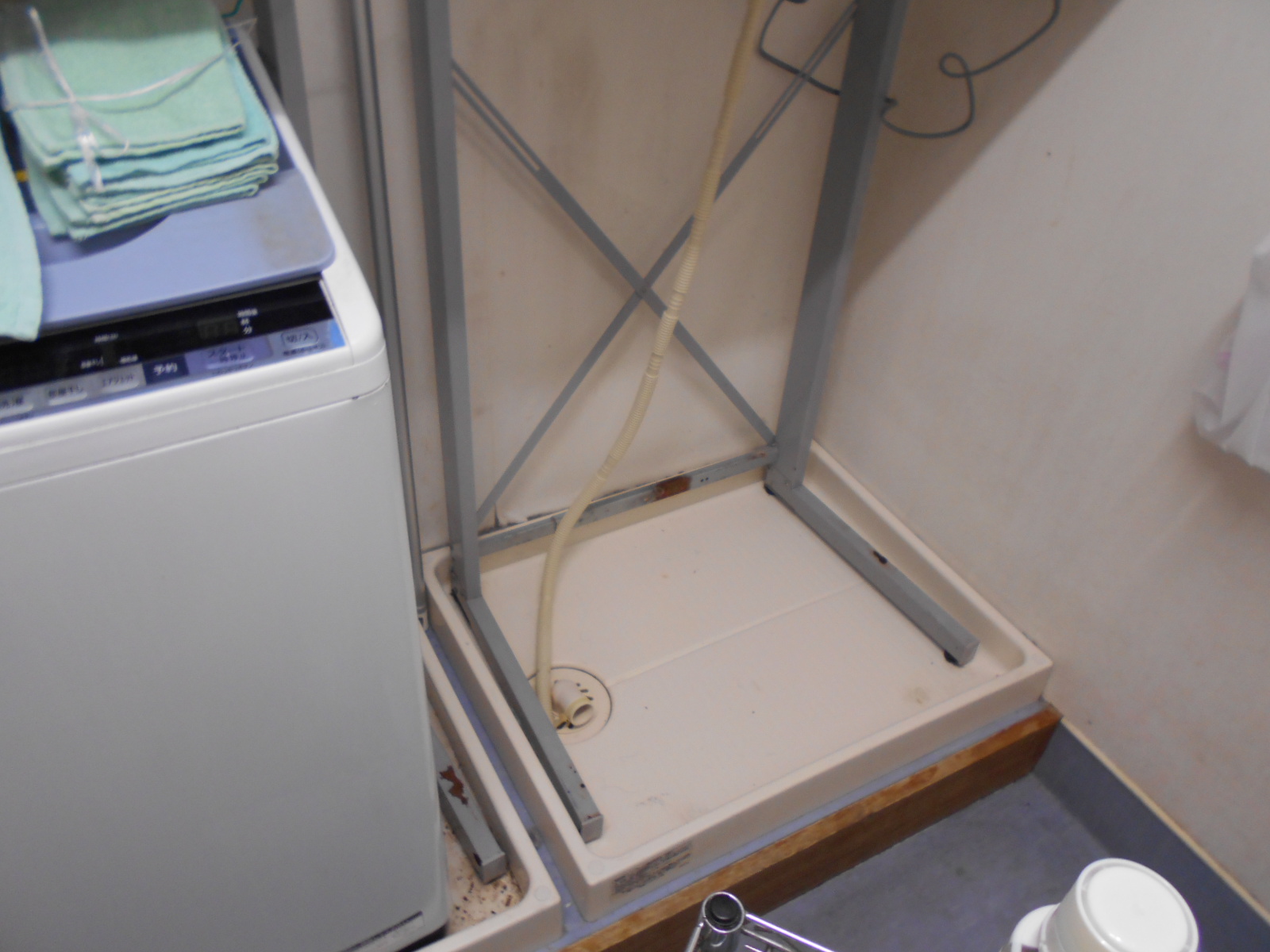 交換の為古い洗濯機をどかすと長年の汚れが・・・
