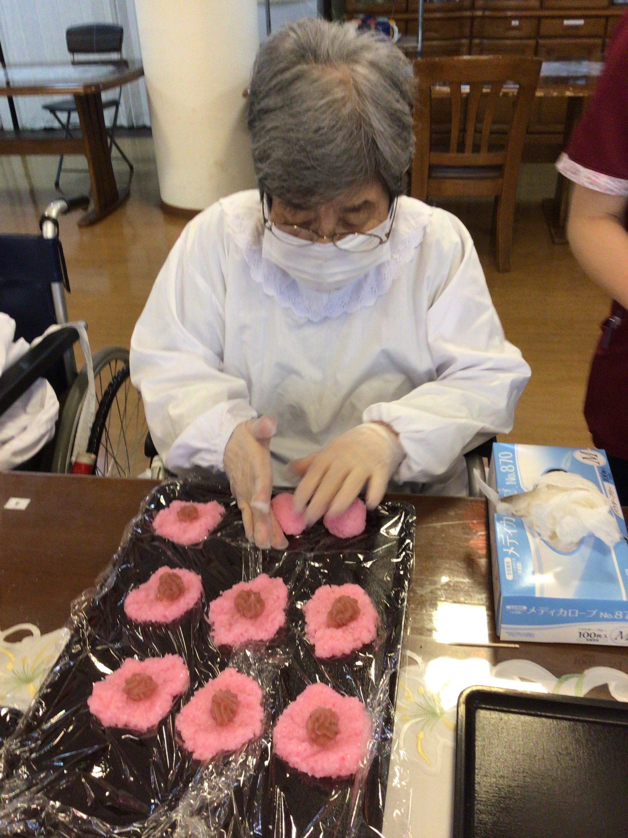 道明寺の試作を行い、職員数名に試食を行ってもらいました。