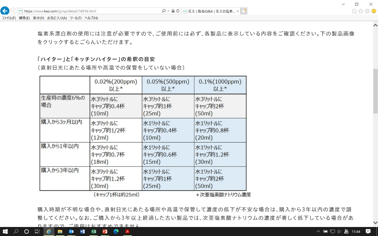 ・①のハイターを15ml入れます(ペットボトルのフタ内側のスクリュー線の上あたりで5ml)