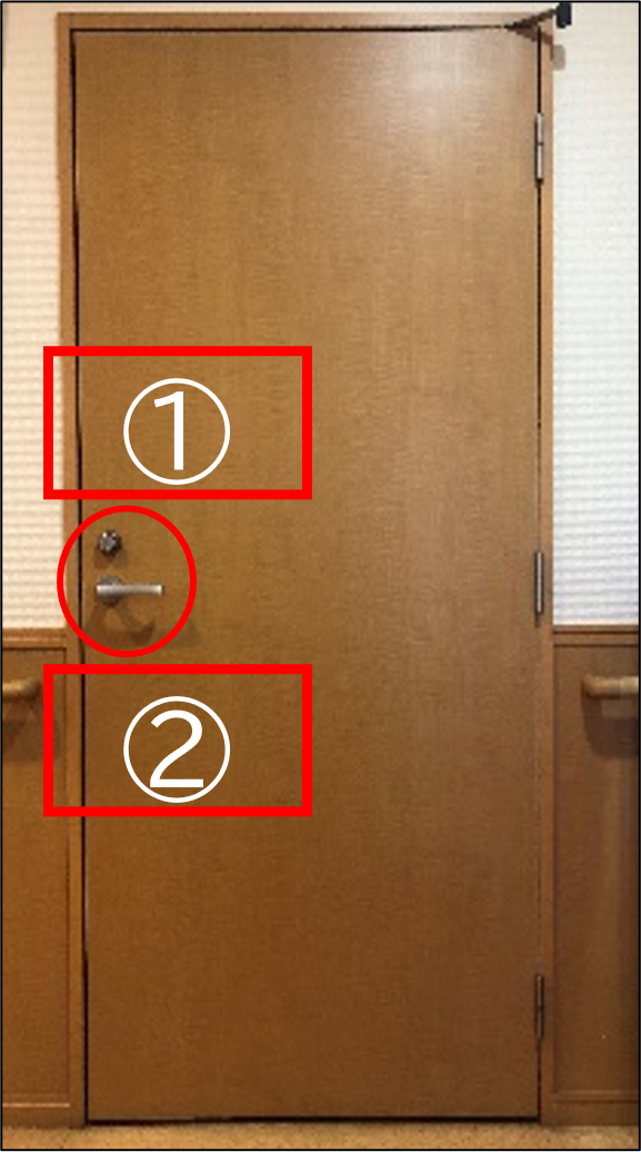(下記写真参照)ドアノブと赤い四角で囲まれた①の部分です。