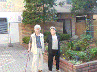 今日は中庭を散歩中の入居者様の様子を報告させていただきます。