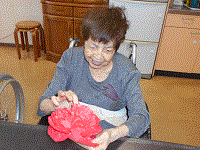 今日は定番のお花作りを入居者様が手伝って