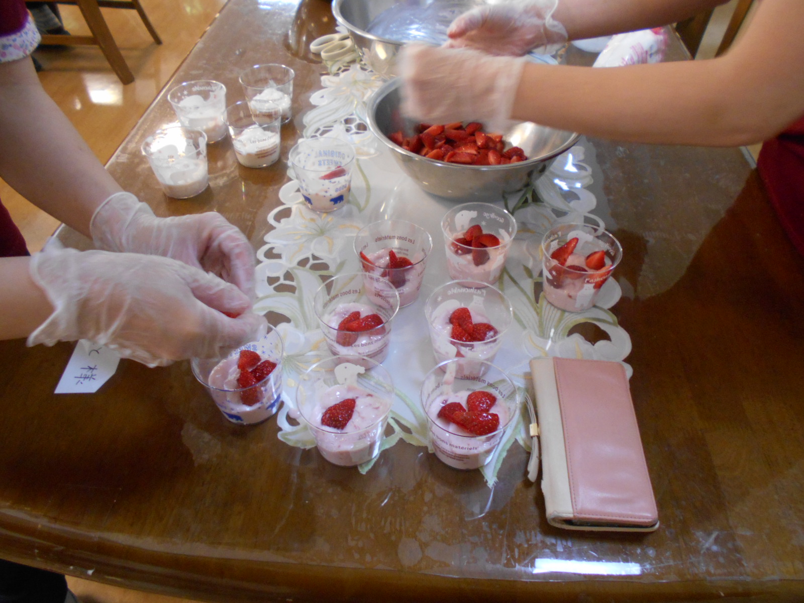 カーネーション作成後は、おやつのフルーチェを作り召し上がりましたよ!