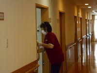 各フロア(居室含む)の窓を開け手摺等の消毒を行い感染症予防に