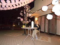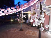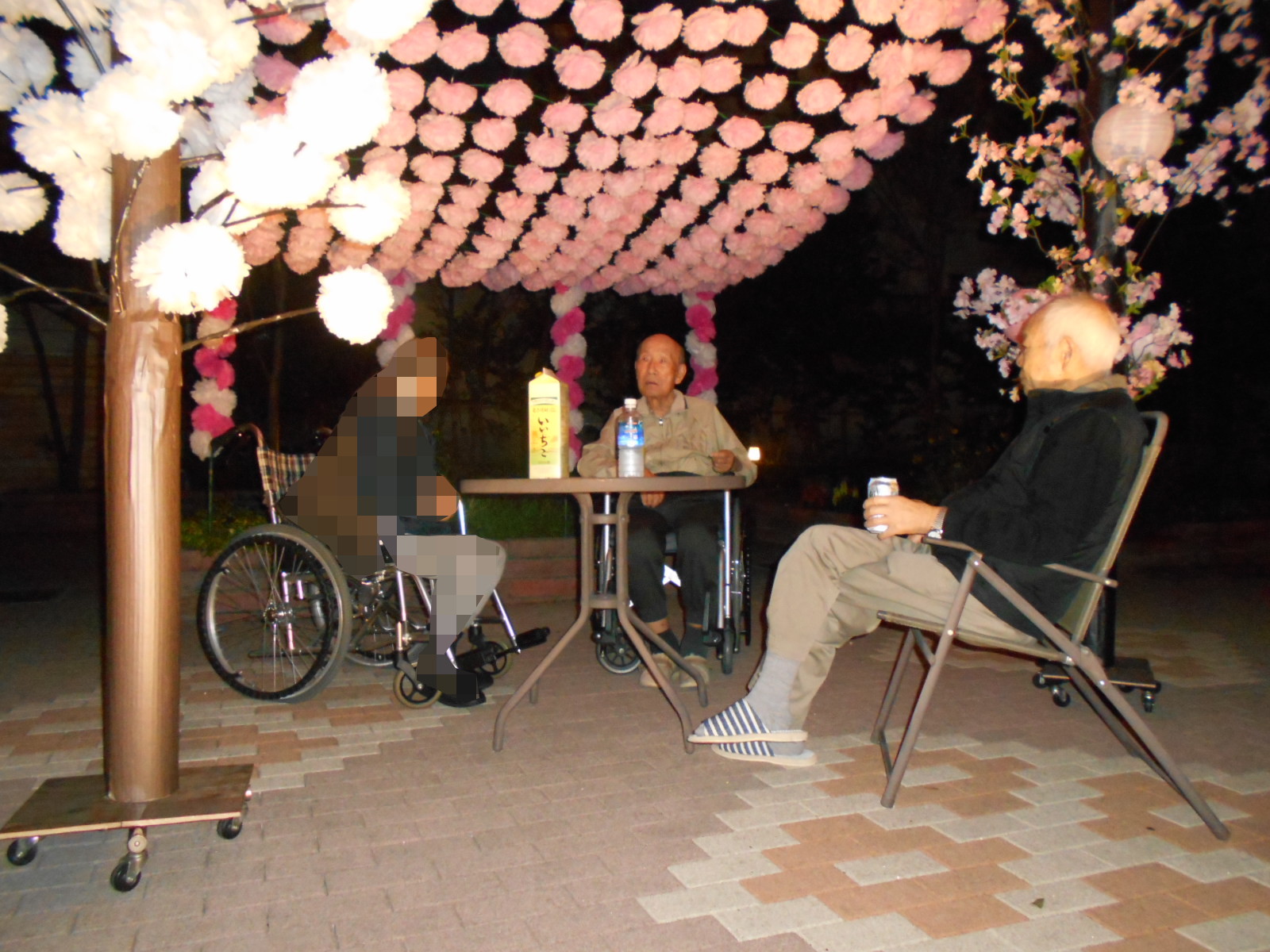 夕食後に夕暮れを待って夜桜見物を開催しました。