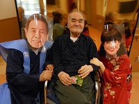 豆まき(紙吹雪)を行い、入居者様全員と記念撮影を行いました。