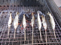 釣った公魚(実は本モロコ※高級魚らしい))を炭火で焼き、入居者様と職員で