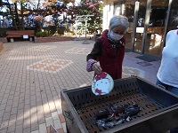 中庭でバーベキュー~~(゜))<<