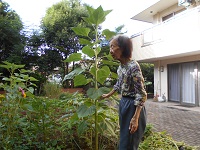 なんと入居者様よりも大きいひまわりが育っているんです。