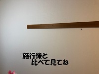 今回は、和風の家具を置いてある居室に梅の模様が入ったクロスを貼らせて頂きました。