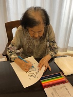 何かできる事を考え、カエルの塗り絵を行って頂きました。