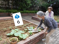 久々の晴天により、中庭にて日光浴がてらかぼちゃに水やりを行いました。☀