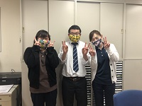 デスクワーク中心の事務所は手作りマスクを装着し、他職員は通勤用