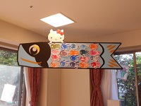 食堂にカラフルに泳いでいるこいのぼりを見て