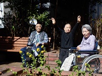 天気が良く温かい日には、中庭にて黄色に咲き誇った菜の花を鑑賞しながら