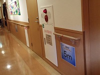 自分自身で、歩いた距離が分かり、励みになるよう、手すりに赤いテープ
