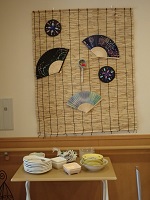 施設前にて駄菓子のほかに、リサイクル食器の販売始めました。
