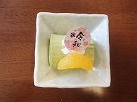 ふわふわの抹茶のロールケーキで生クリームとフルーツも