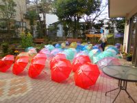 あの風で中庭に咲いた傘の花