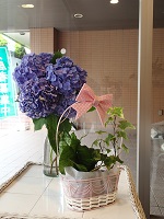 中庭には初夏の花、紫陽花が色鮮やかに咲いています。
