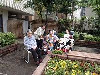今日は、午前中は曇り空で午後は晴れるとの天気予報でしたが、午前中はしっかり雨降りで、残念と思っていたら、午後から天気が回復し晴れ間が見えたので、中庭で日向ぼっこをしました。