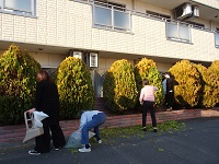 施設入口の植木の剪定作業を行いました。