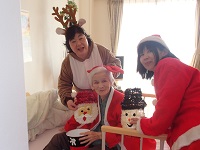 ご入院されているご入居者様の所にも、トナカイの衣装でお見舞いに伺わせて頂きプレゼントをお渡しさせて頂きました。