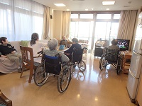 本日は、おやつの時間に2階フロアでカラオケを行いました。