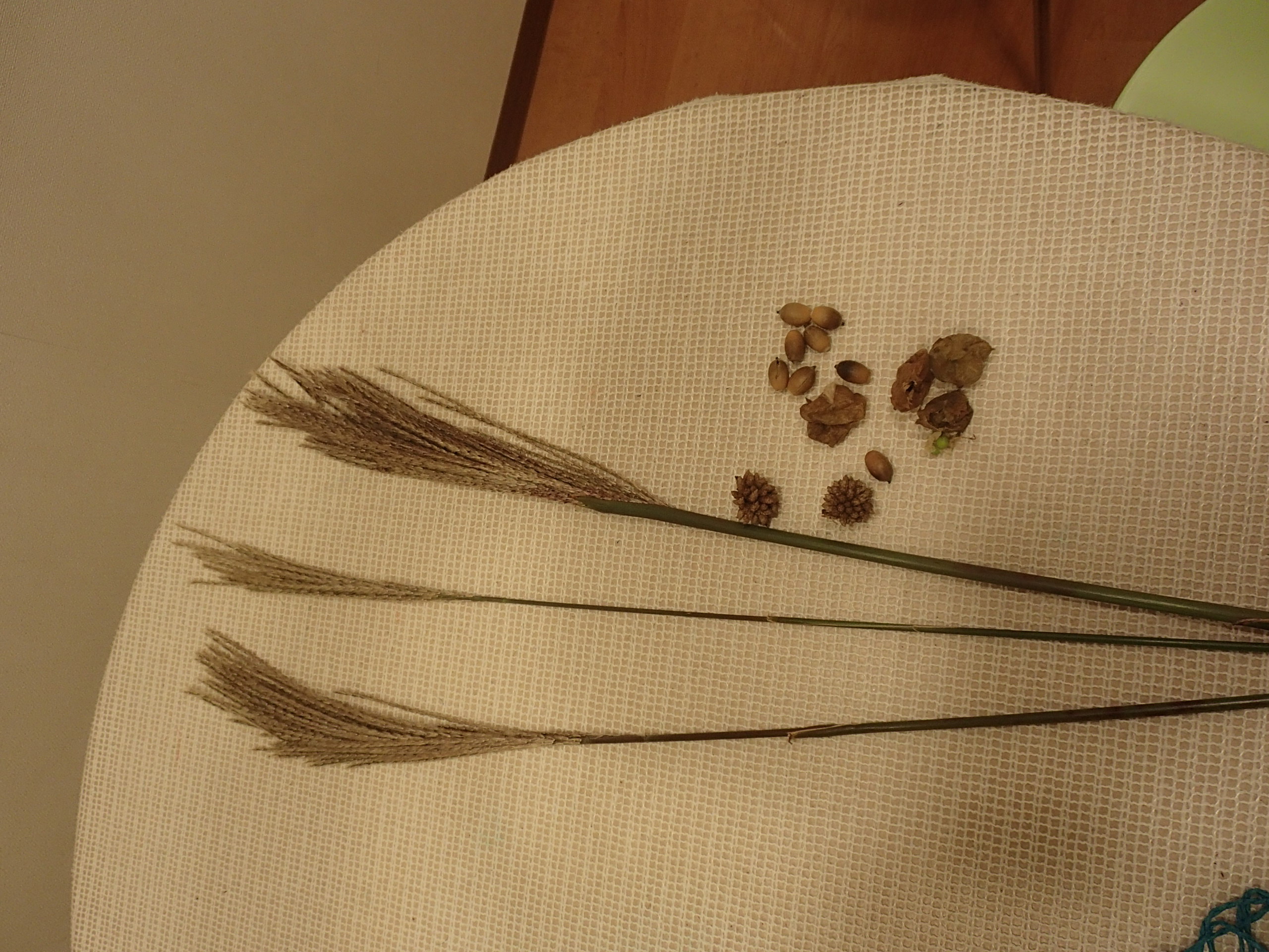 すすき、どんぐり、フウセンカズラを手に帰宅しました。