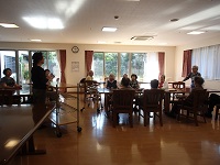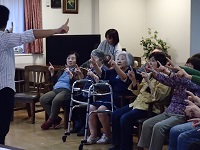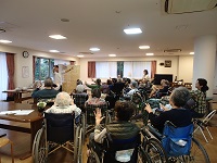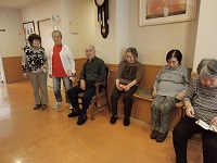 ケアさんのかけ声に合わせて、昼食前の体操を
