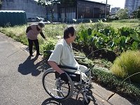 ご入居者様と一緒に施設の近くにお散歩に出かけました。