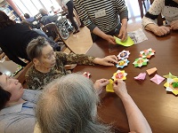 歌に併せての体操で、ご入居者様も口ずさみながら一緒に体操を行っていました。