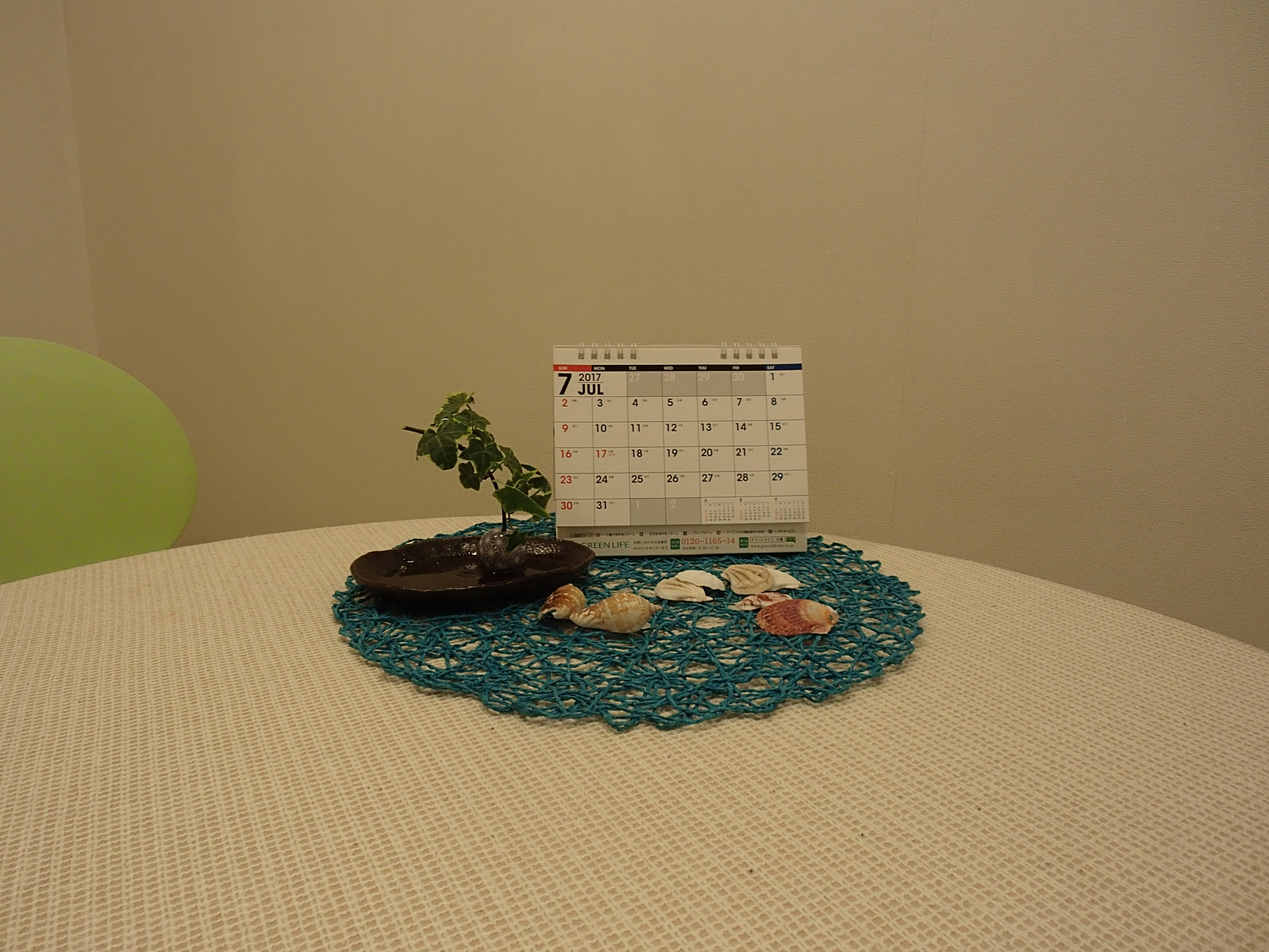 受付の札には風鈴を飾り、相談室には貝殻などを飾ってみました。