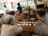 入居者様は、紙芝居、お手玉、トランプ、あやとり等で楽しんでおられます。