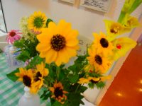 オクラも今日は花が咲いていました。黄色の可愛い花です。