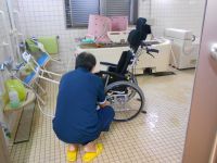 時間を見つけてスタッフも車椅子の掃除をしているのですが