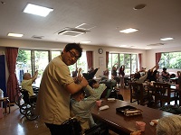 腕を上げているところを撮影させて頂きましたが、撮影の時に声掛けをしましたら、思わず、職員が振り向いてくれましたので、笑ってと再度声掛けをし、