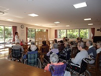 入居者様のフロアに、カーネーションを飾らせて頂いた時に、「玄関にひまわりがあります」とお伝えしたら、「食事の時に見に行くわ」と話されていました。