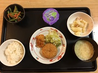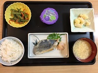 本日のメニューは、サーモンメンチフライ・豚の角煮・鰆の粕漬け焼きでした。